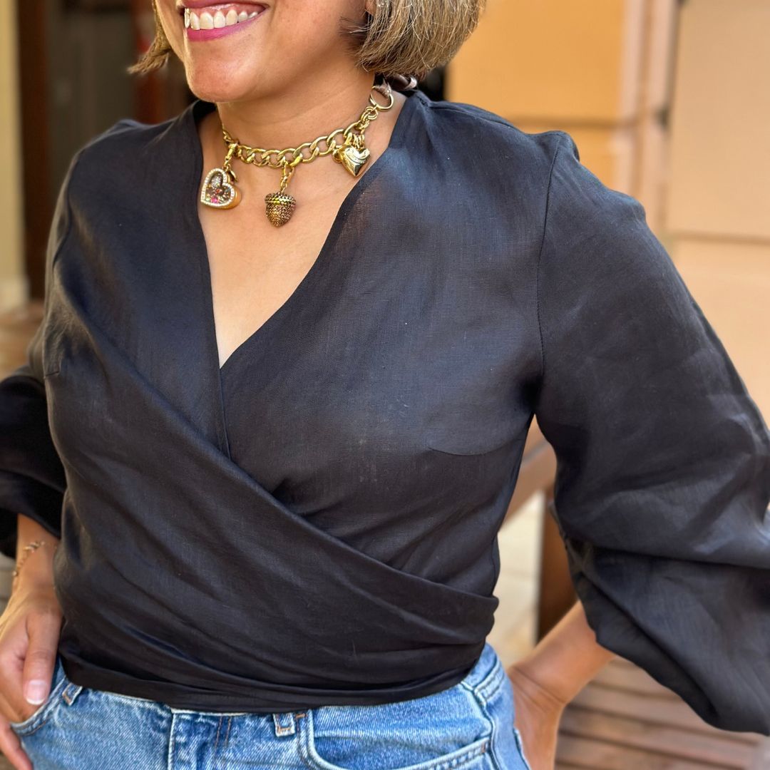 Our one size fits all Bolero Nodo top is your go-to for breezy elegance. You can style it many different ways by tying the knot in front or at the back, revealing less or more (depending on your mood and the occasion:)Â Pair it with our Mia Pants or with jeans